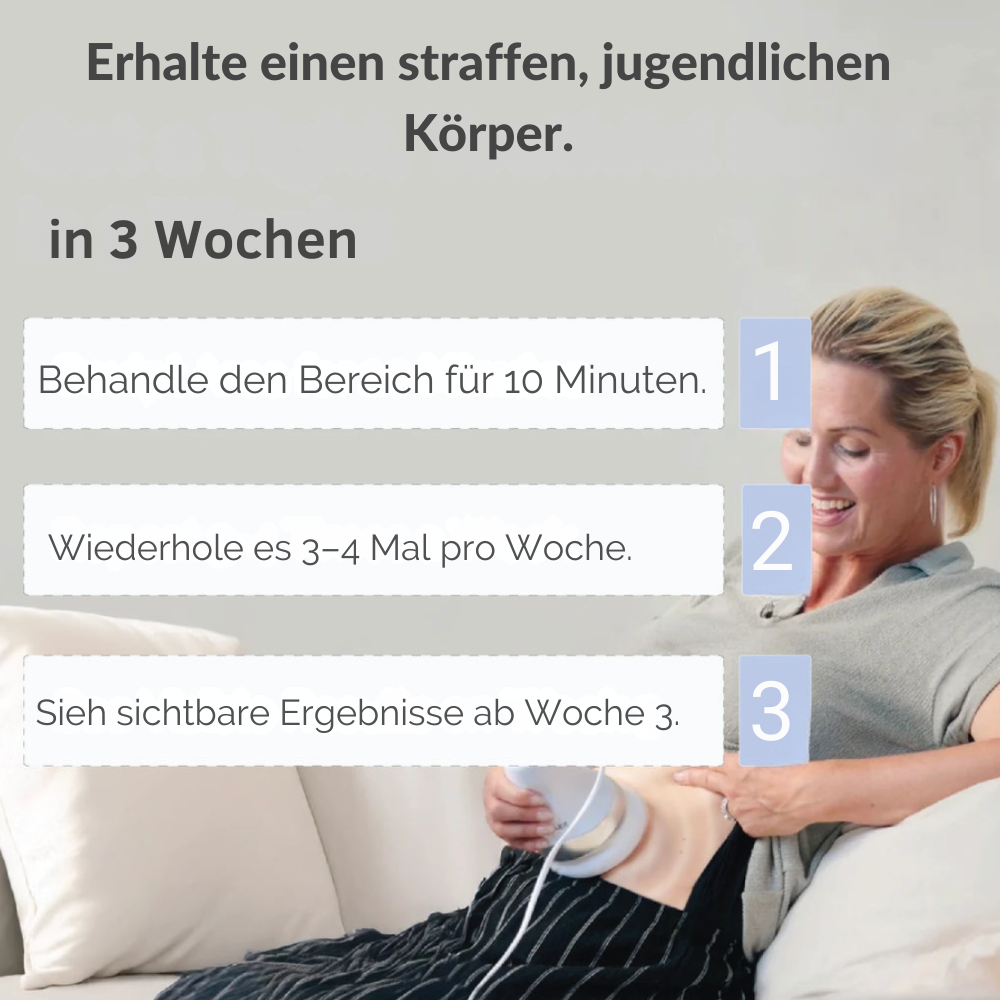 Es baut Fettzellen sanft abaktiviert die Kollagenproduktion und verbessert die Durchblutung, wodurch deine Haut sichtbar straffer, glatter und vitaler wird – ganz ohne Schmerzen oder Risiken.