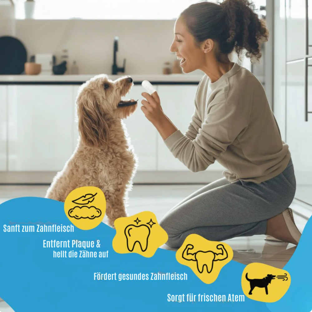 Mit DentaPaws reinigst du die Zähne deines Hundes sanft, schmerzfrei und ohne Zahnbürste.